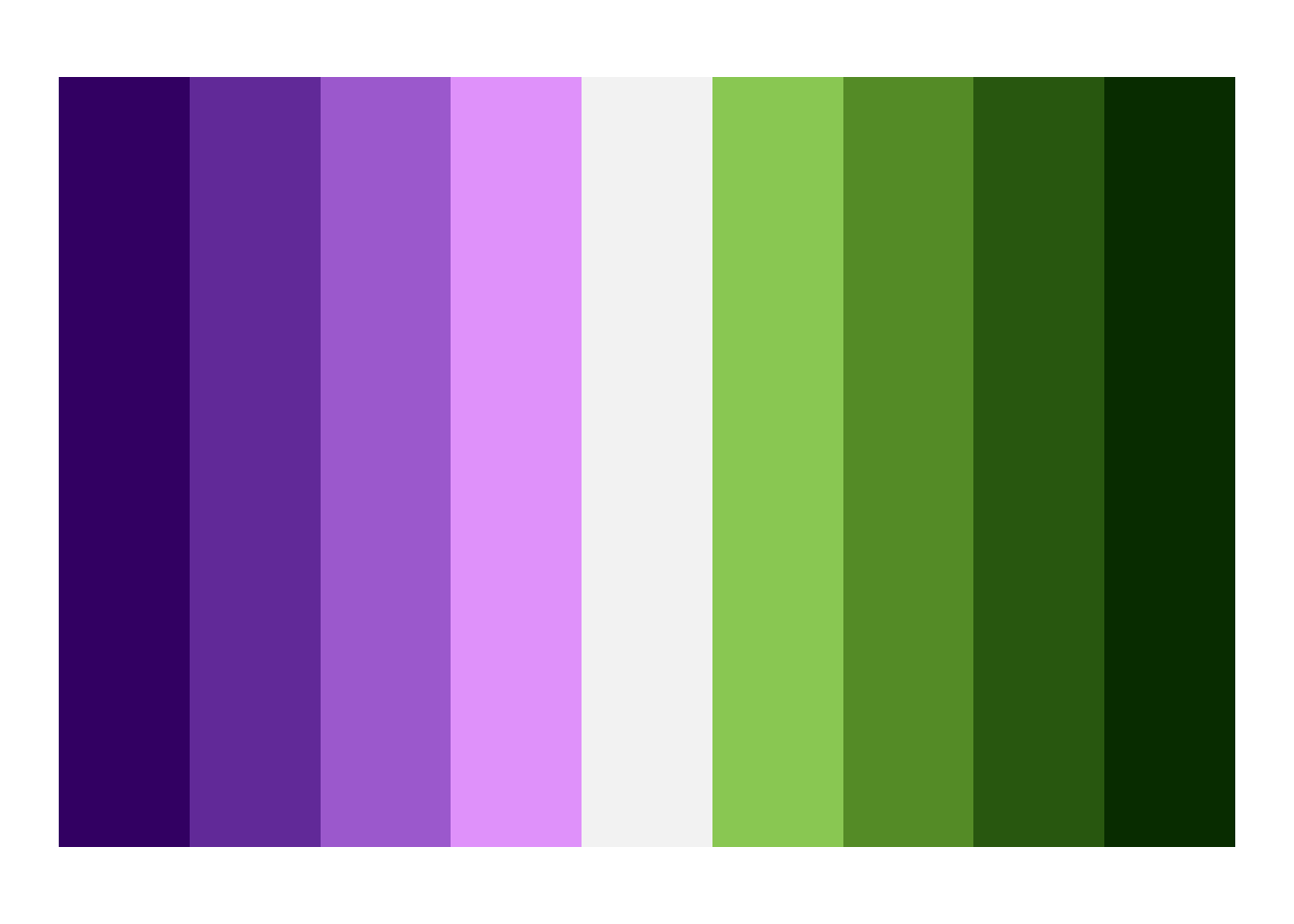 plot_palette(prettycols(n = 9, "PurpleGreens"))