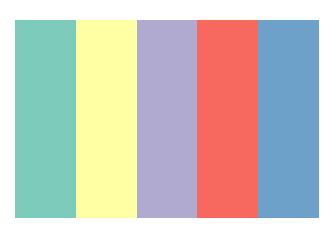 Sometimes you want to have a lot of control, and select each color individually Other times, you may want to use a color palette that has been thoughtfully designed by someone else. There are many color palettes that have been designed by artists, data scientists, and others, and you can use these in your plots. There are many packages in R that provide color palettes, and you can use these in your plots. The {paletteer} R package has gathered many of these palettes into one manageable package. Here are a few examples of color palettes that you can use in R. Copy and run this code in your local RStudio to see the colors in action.