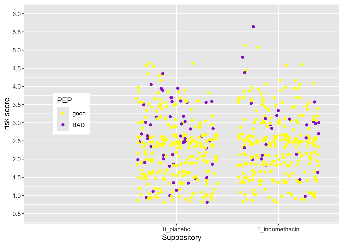 Let’s start with a scatterplot of age vs risk of PEP in the indo_rct dataset