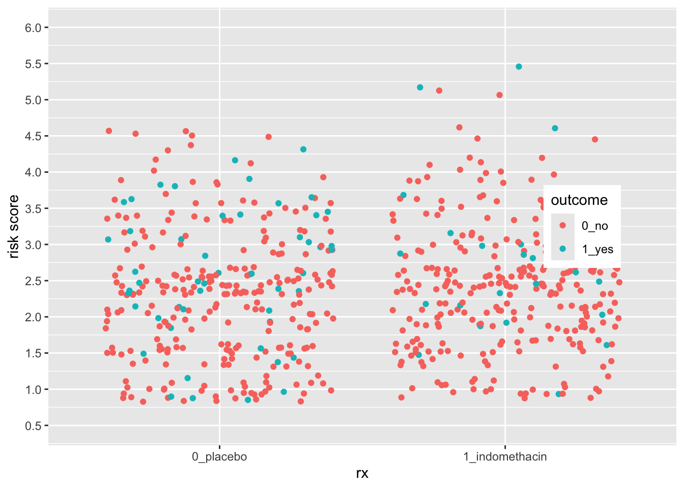 aes(x = rx, y = risk, color = outcome) +
