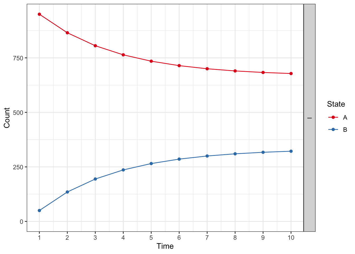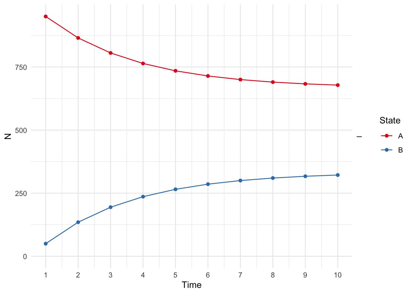 Which will label these as health state A and health state B, since we did not name the health states. You can also name the health states by using the define_transition() function with the states argument.
